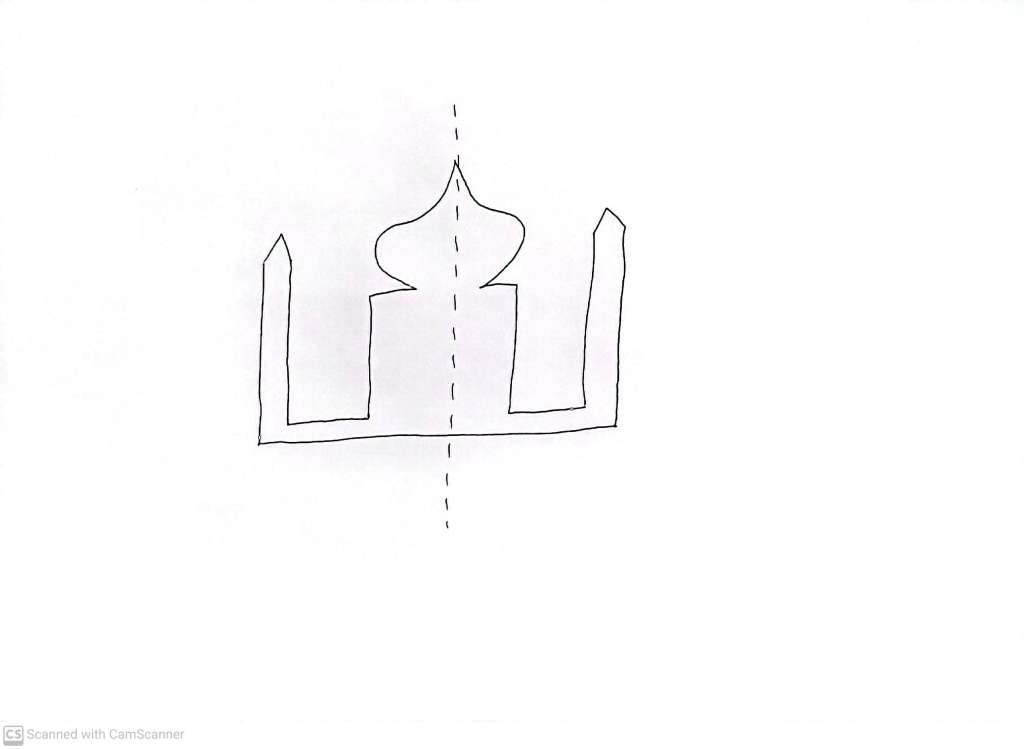 You have to do something special in order to draw a shape which looks ”essentially the same” after reflection. Technically, we say such a (2 dimensional) shape has a line of ‘reflection symmetry’ or ‘mirror symmetry’. We can cut to the chase and forget about mucking around with translations and rotations after doing some crazy reflections – all we need to do, to convince ourselves that there is mirror symmetry, is just demonstrate that there is a particular reflection which has no effect. In informal language, this is pretty much what is usually meant by saying the shape “is symmetrical”, or “has symmetry”, like a symmetrical building.