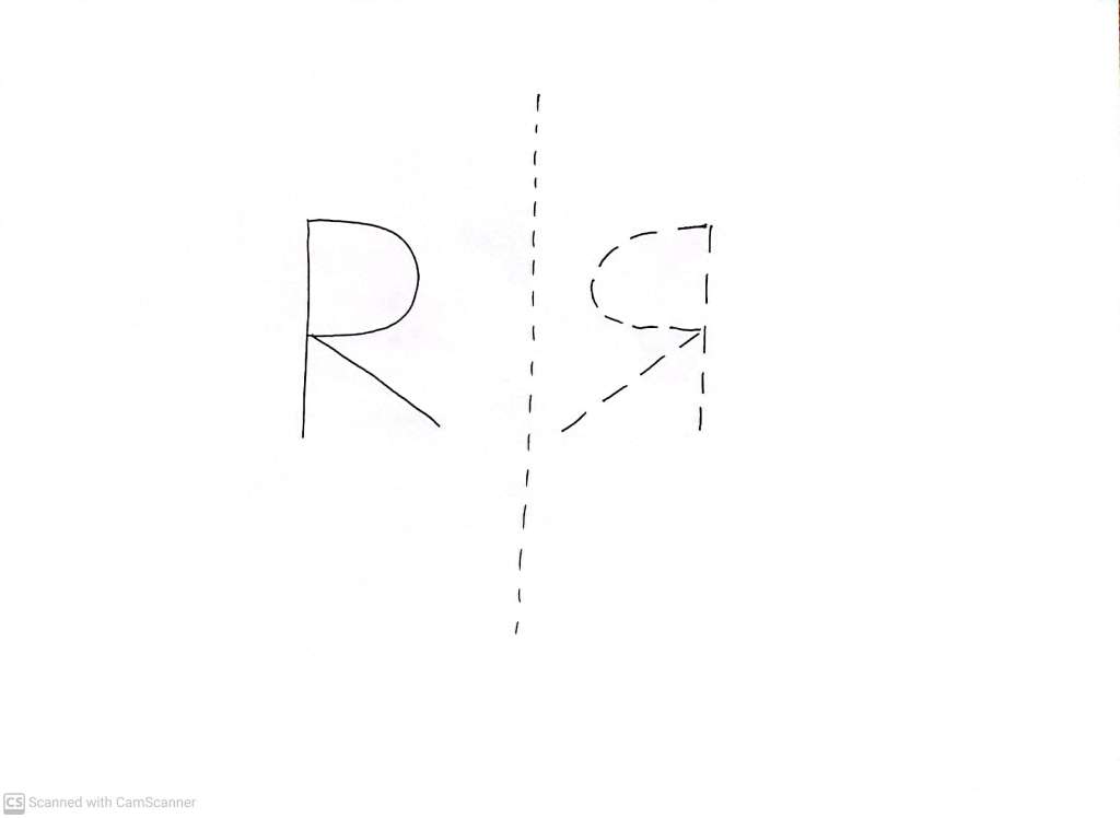 Now a reflected R cannot be ‘rotated’ and ‘translated’ to make it ‘look like’ (i.e. hide by lying precisely on top of) the original R. A reflected R is not the same thing as a normal R.
