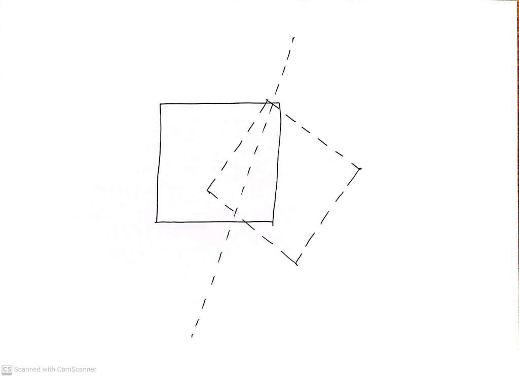 Basically, the question is this: Can we ‘rotate’ and/or ‘translate’ the ‘reflected’ shape in such a way that we get back to where we started – crucially without relying on using another ‘reflection’. For squares and circles, this is easy. No matter how we choose the mirror line through which to reflect a square or circle, we always end up with a square or circle which is, in essence, exactly the same as the one we started with. I say ‘in essence’, to mean that the reflection, which might be tilted or displaced relative to the original, can be repositioned on to the original square without having to sneakily explicitly undo the reflection – relying only on translation and rotation.