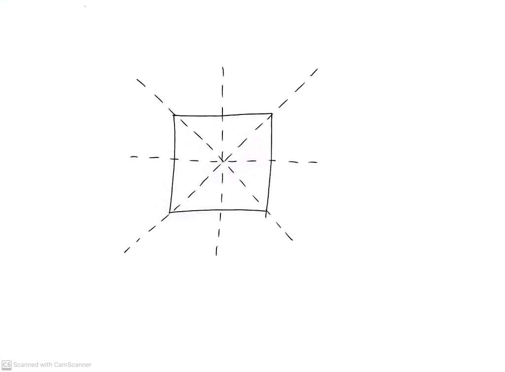 For example, the solid line square below is reflected through the short-dash mirror line, giving us the longer-dash ‘reflected’ square.