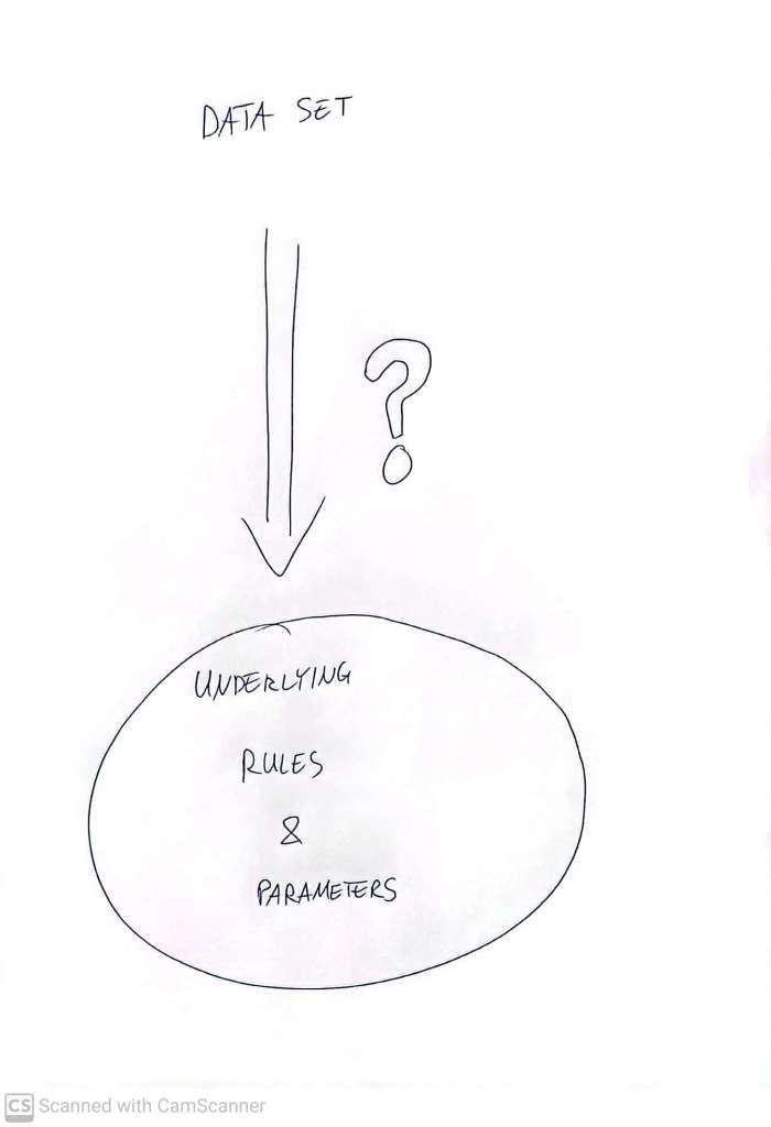 But – this is not really the situation in which we usually find ourselves. More usually, we are planning, or have done, an experiment, and we want to milk the data for knowledge about what the underlying rules are – which is pretty much the inverse!