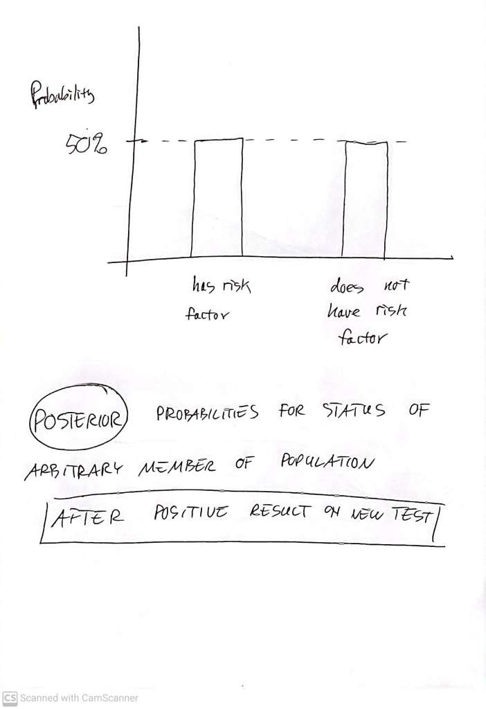 Now we do the test – and it comes up ‘positive’ for the genetic marker. As per the above reasoning, we now have the ‘posterior’:
