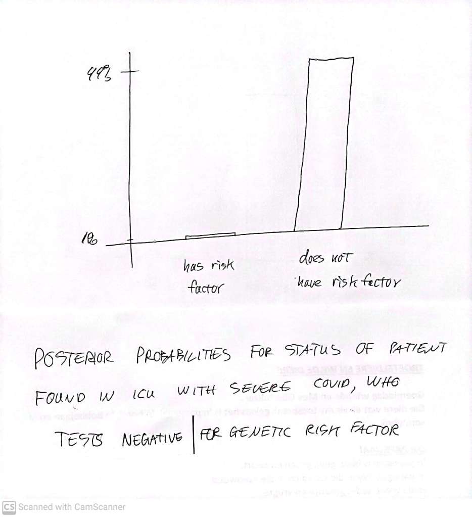 Now assume that we know, from detailed studies, that almost exactly 1 percent of people have this genetic risk factor, and we want to use this cheap new test to see, in various contexts, who these particular people are, to ensure that they get appropriate treatment. We have a drug which is specifically effective in combating complications from the particular risk factor – but is useless against Covid complications arising for other reasons, and has potentially serious side effects. This drug should therefore not be be given to patients unless we are pretty sure that they have the particular genetic risk factor, even if they have already developed severe covid.